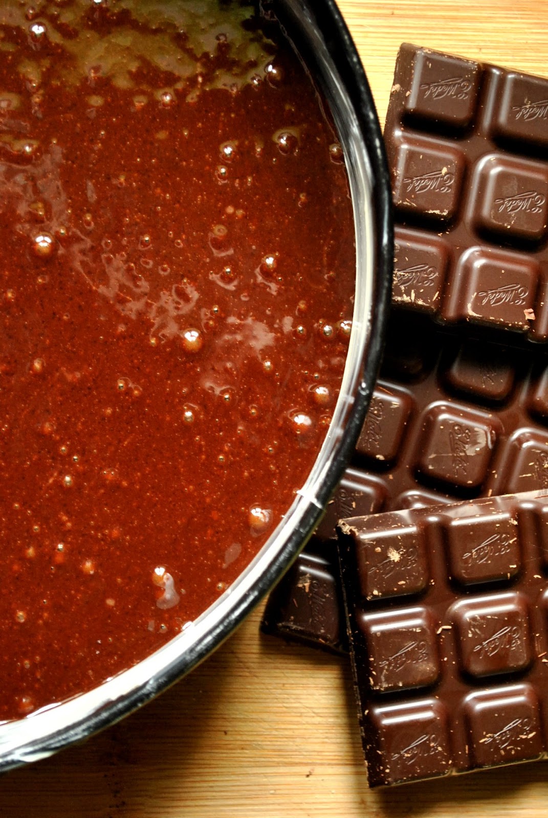 Kilka razy już wspominałam, że cukiernik ze mnie marny, jednak od czasu do czasu coś słodkiego mi wychodzi. Na tort czekoladowy jednak nie powinnam się była porywać. Miał być tort baaaardzo czekoladowy. Taki idealny na specjalne okazje. Niestety, choć w smaku okazał się naprawdę rewelacyjny,  wyszedł też nieprzeciętnie brzydki...Najpierw miała być dekoracja z czekolady - zamiast wielkich płatów wyszły wiórki. Później miały być karmelowe pajęczynki - wszystkie próby posypały się w drobny mak. Może więc Wam wyjdzie ładniejszy, jeśli jesteście choć odrobinę bardziej cukierniczo uzdolnieni niż ja ;) Można tort po prostu pokryć masą cukierniczą lub kremem maślanym.